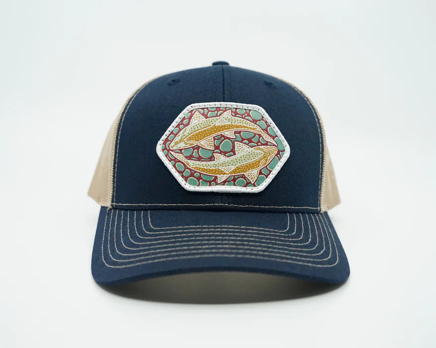 Gin Clear Trucker Specifics: Exclusive "Gin Clear" Woven Patch Artwork features two trout in a crystal...