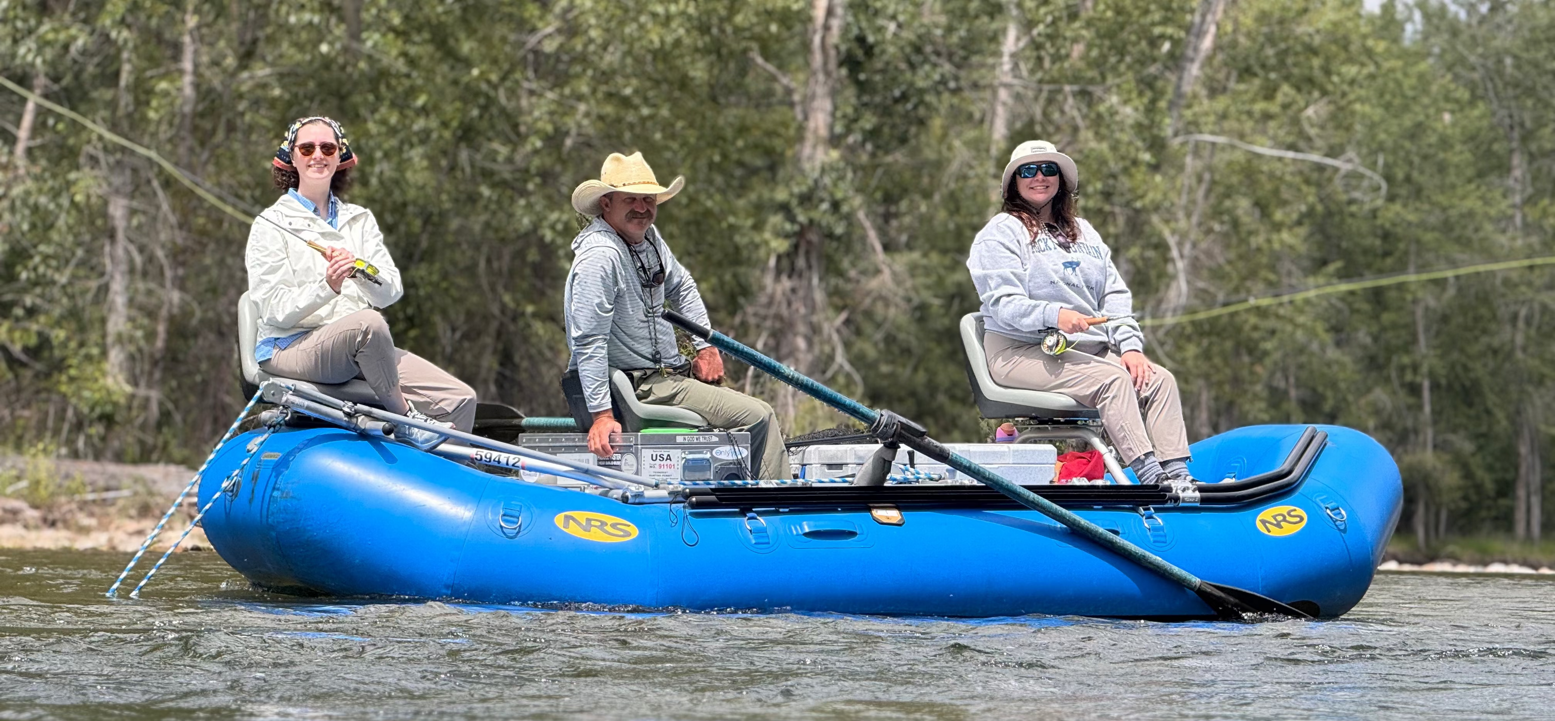 - In the colder months (October through April), it’s best to dress in layers—think insulated outerwear, wool socks, gloves, and a warm hat or beanie. When it warms up (May through September), go for sun-protective gear like sun hoodies or lightweight shirts, a hat, and quick-dry pants. We wear waders when it’s cold, but can't wait to ditch them as soon as it warms up! Rain gear’s never a bad idea either—better to have it and not need it!