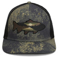 The Sunset Trout Fishing Hat Mesh Back Hat features a trout and mountain silhouette patch on the front. Additionally this Fly Fishing cap features a 6-panel design with a structured front and mesh back. Coupled with our American Fit sizing that fits men's head size MD - 2X hat size. Combine with our ComfortSnap elastic snapback that couples the stretch of elastic with the adjustability of a snapback. If you are looking for the best outdoor, mountain, or fishing hats we have you covered. This fish silhouette baseball cap is available in grey and olive.